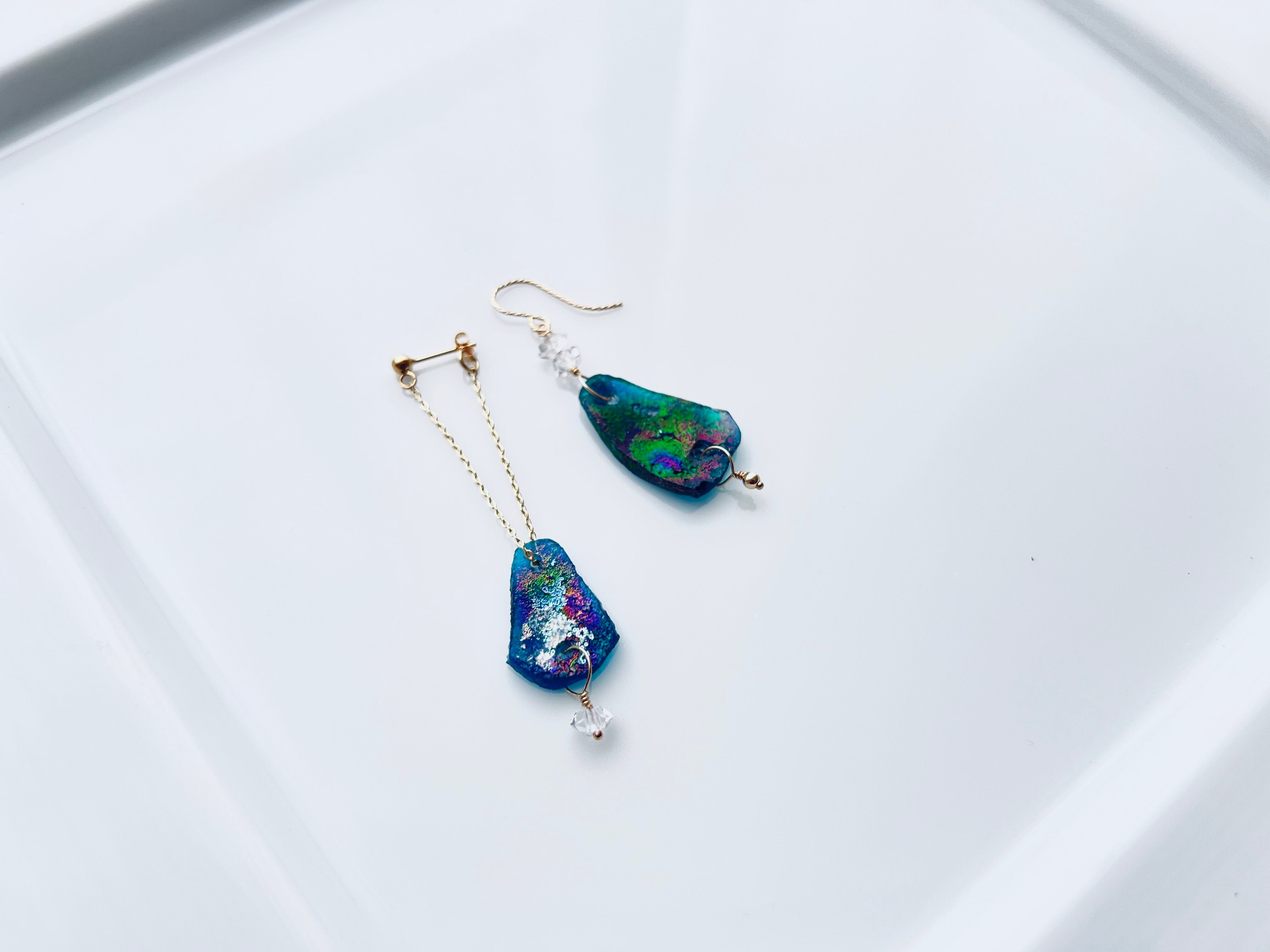 ピアスパーツもアシンメトリーなデザインでお作りしております。