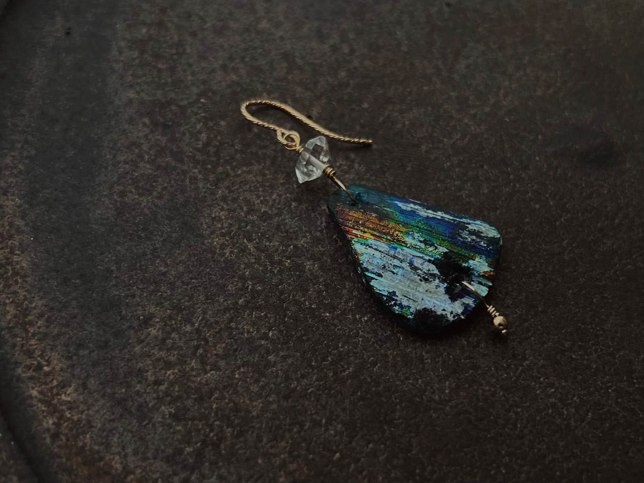 ハーキマーダイヤモンドを添えたアイテムです。
